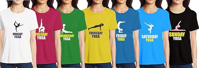 Pooplu Women's Regular Fit Yoga Combo Cotton Graphic Printed Round Neck Half Sleeves Pack of 7 Multicolour Yoga T Shirt.Yoga, Exercise, Gym, Fitness Pootlu Tshirts
